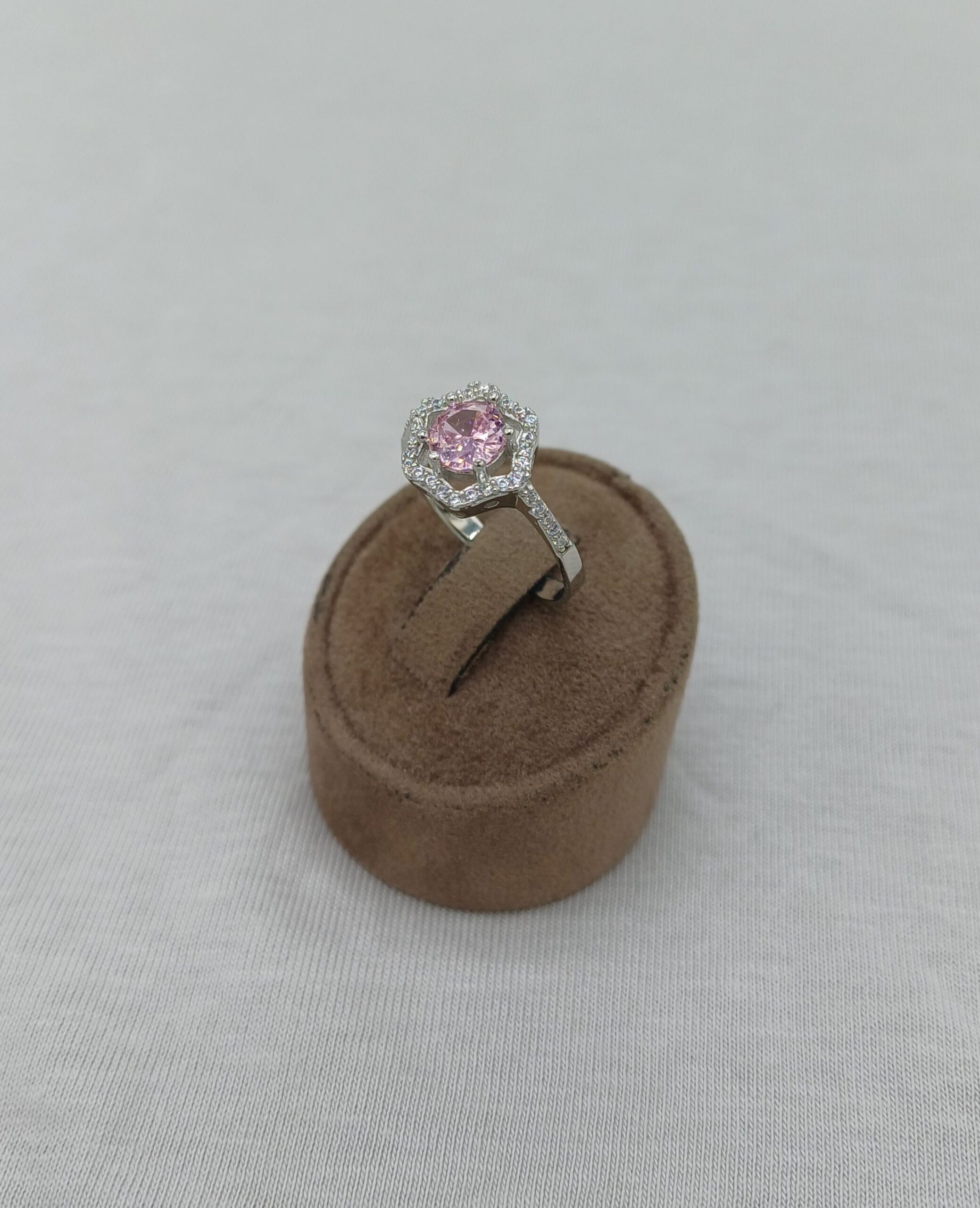 Pink Crown yüzük, pembe taşının büyüleyici parlaklığıyla dikkat çeker. Parlak taş kesimi sayesinde ışığı mükemmel şekilde yansıtır. Özel günler, davetler veya günlük kullanım için ideal bir yüzüktür.