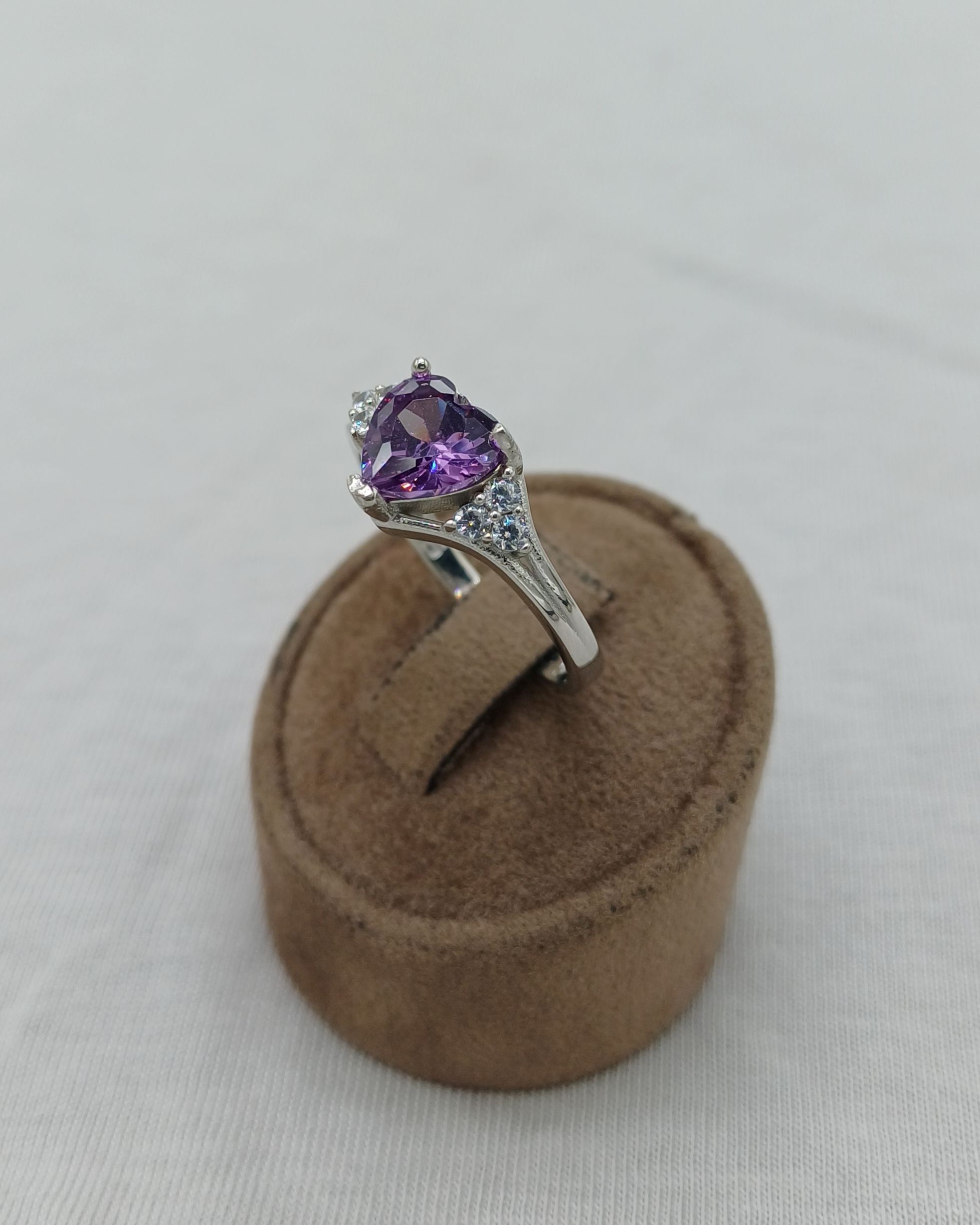 Violet Queen yüzük, büyük mor taşı ve ışığı kıran kesimi ile dikkat çekici bir görünüm sunar. Özel günlerde iddialı bir şıklık arayanların favorisi olacaktır. 925 gümüşten üretilmiştir ve kararma yapmaz.
